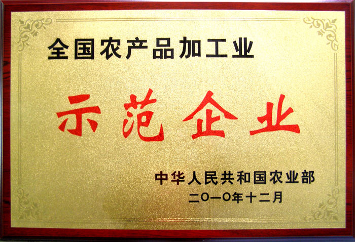 全國農(nóng)產(chǎn)品加工業(yè)示范企業(yè)