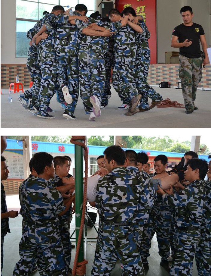 此次訓練營以“熔煉團隊?共創輝煌”為主題,訓練項目主要包括幸福團團坐、破冰起航、挑戰150秒、學習亮劍精神、高空項目、信任背摔、翻越畢業墻等。
